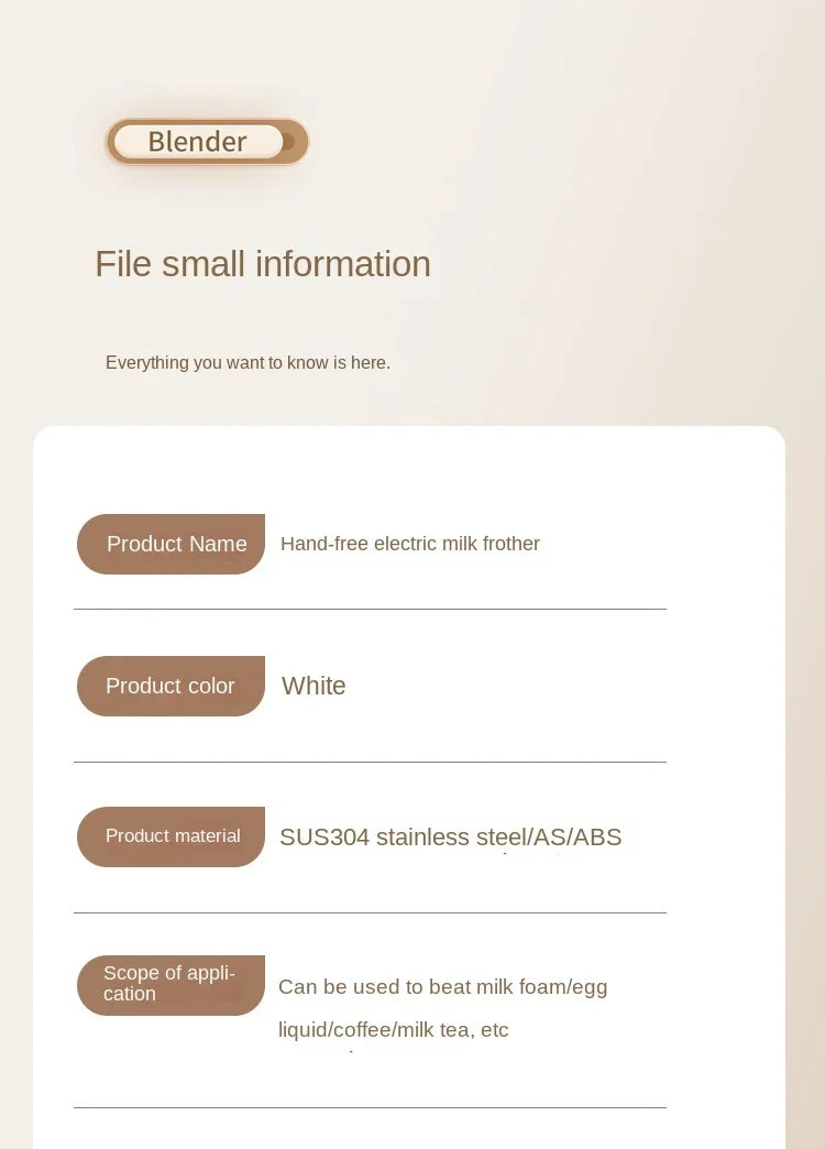 3-in-1 Function: Milk foamer, frother & blender in one device