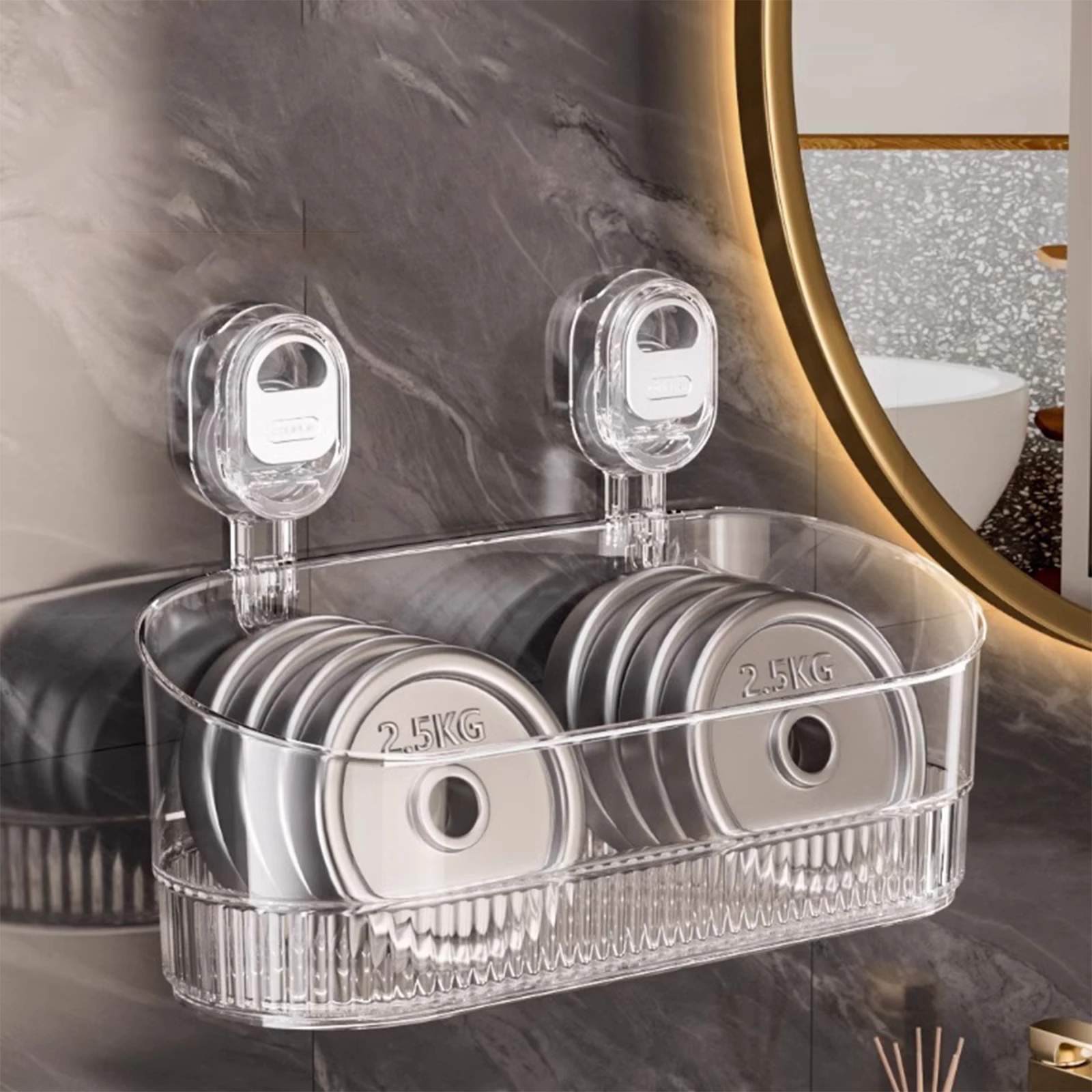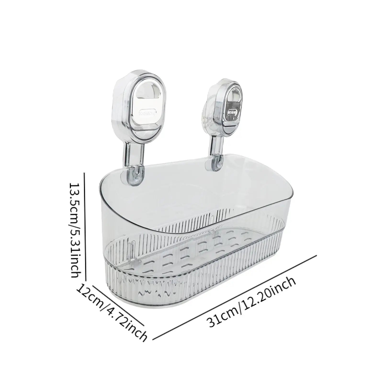 Built from durable PET material, it stays lightweight yet tough enough for daily use. The powerful suction cups keep the shelf firmly in place without drilling or wall damage—just twist to lock and twist again to remove. The drainage holes keep everything dry, clean, and sanitary.