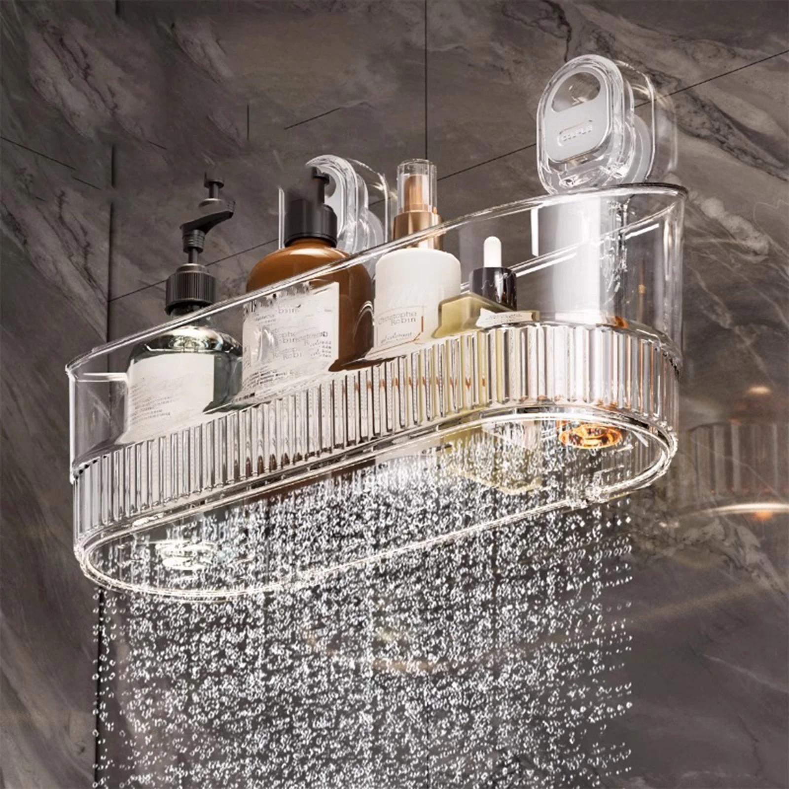 Transform your bathroom into a clean, organized space with this Premium Suction Cup Shower Shelf. Designed with a modern transparent look, this shelf blends seamlessly with any décor while providing strong, reliable storage.